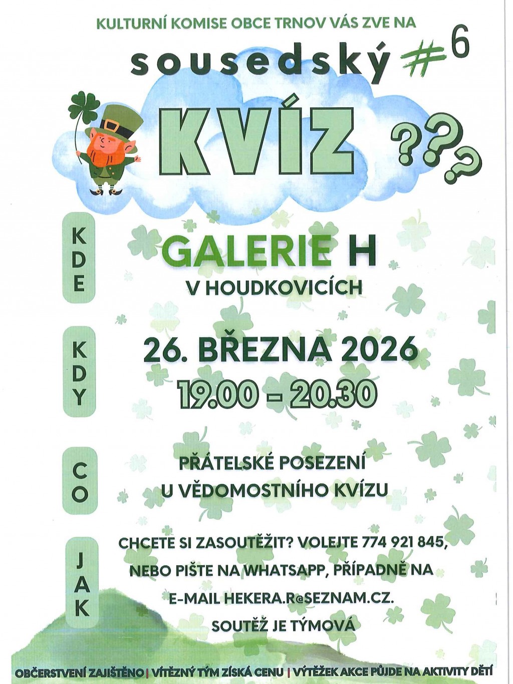 Přijměte pozvání na SOUSEDSKÝ KVÍZ, který se uskuteční 26. března od 19:00 hodin v Galerii H v Houdkovicích.