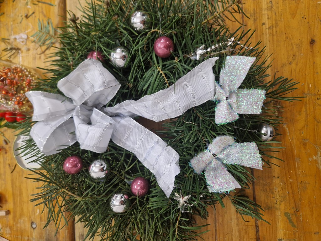 Výsledkem byly krásné vánoční věnce, které si účastnící odnesli domů.