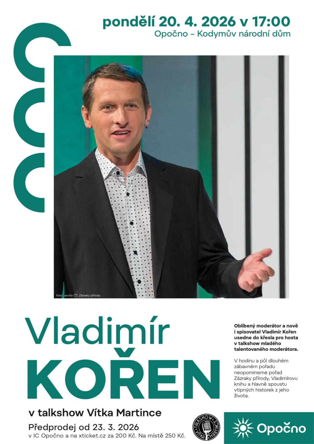 Dovolte mi, abych Vás pozvala na akce konané v měsíci dubnu v Opočně. Celý kalendář akcí naleznete na webu města Opočna zde https://www.mestoopocno.cz/vismo/kalendar-akci.asp?kdy=-1&kaNM=1&pocet=99&p1=1019&kaDateO=30.4.2026&datum_od=01.04.2026&datum_do=30.04.2026#kaListing. Plakáty na jednotlivé akce naleznete v příloze.