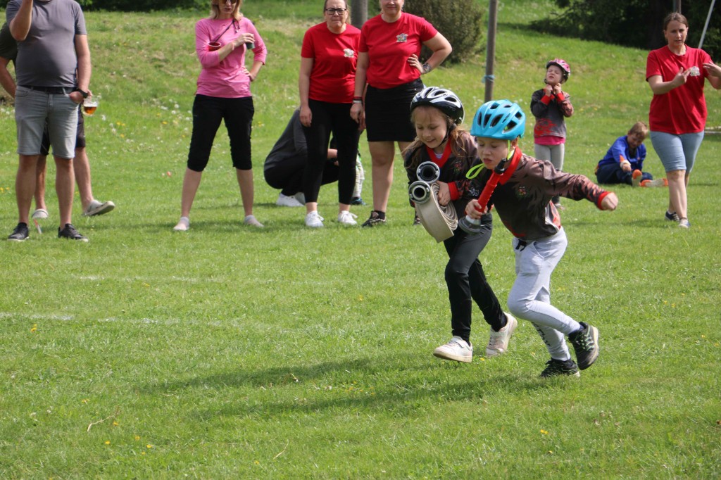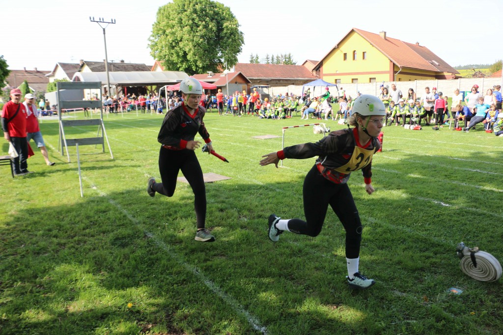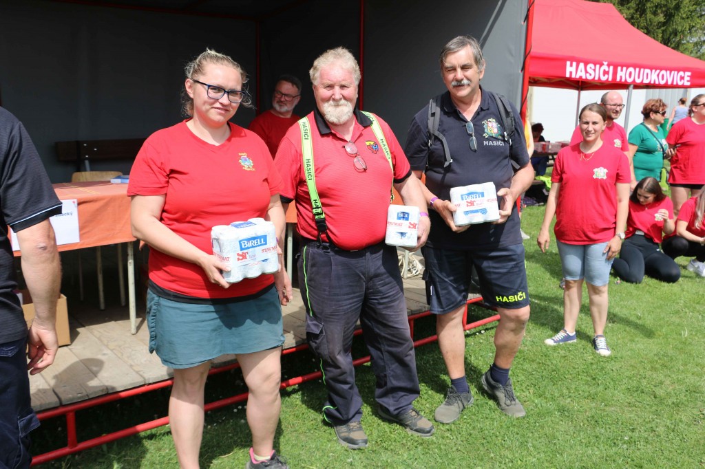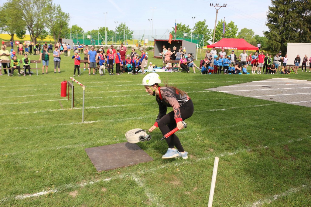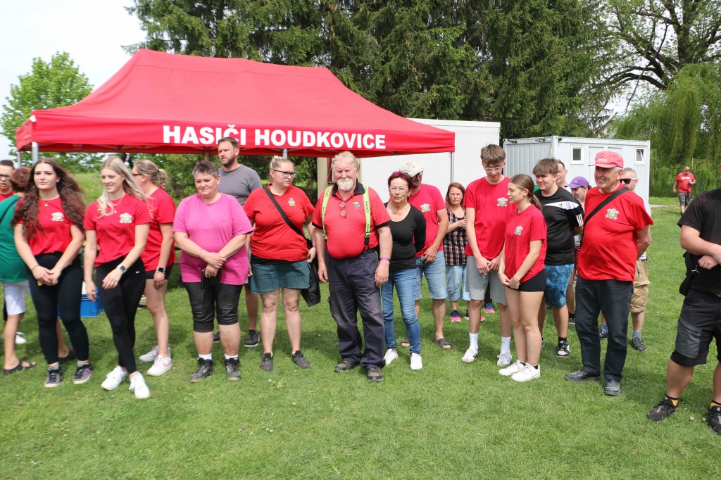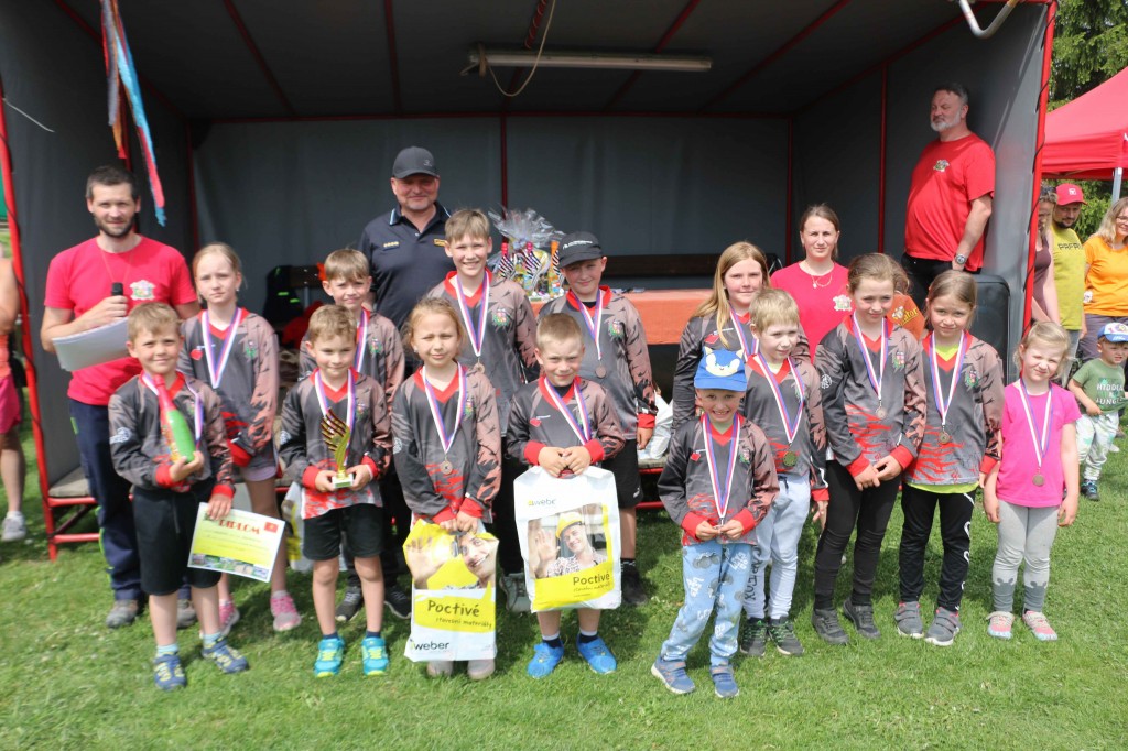 První květnovou sobotu, tj. 3. 5. 2025 jsme uspořádali u nás na hřišti v Houdkovicích soutěž pro mladé hasiče, která je součástí tzv. Ligy hasičské mládeže okresu Rychnov nad Kněžnou. Na tuto soutěž se nejvíce těšili naši nejmenší hasiči, protože se chtěli předvést před svými rodiči a kamarády. Celkem se k nám sjelo 16 družstev mladších a 13 starších. Děti změřily své dovednosti ve štafetě požárních dvojic a štafetě CTIF. Na obě disciplíny měli soutěžící 2 pokusy. Po úvodním slovu velitele soutěže a starostky obce obdržela družstva startovní čísla a šlo se soutěžit. Mladší nejdříve plnili štafetu dvojic a starší štafetu CTIF. Potom se kategorie na disciplínách prohodily. A jak si vedli naši svěřenci? Rychlejší hlídka mladších dosáhla na dvojicích času 82,20 sek. Byl to třetí nejrychlejší čas. Ve štafetě CTIF se stopky v lepším pokuse zastavily na hodnotě 116,80 sek, což byl čtvrtý nejrychlejší čas. Starší zahájili soutěž štafetou CTIF, kde dosáhli třetího nejrychlejšího času 91,64 sek. Potom se přesunuli na štafetu dvojic, kde svým dosaženým časem 54,15 sek nedali nikomu šanci a tímto časem dvojice ovládli. Když ukončila své pokusy poslední družstva, následovalo sčítání výsledků. O celkových výsledcích rozhodoval součet umístění, když ho měla družstva stejný, rozhodoval součet časů. Asi ve 13.30 hod proběhlo závěrečné vyhodnocení celé soutěže. Velká radost vypukla, když se naši mladší dozvěděli, že se umísili na pěkném 3. místě. V kategorii mladších vyhrály děti z Černíkovic a na druhém místě se umístila Javornice. Ještě větší radost nám udělaly děti ve starší kategorii. Jejich součet umístění byl čtyři, který byl nejnižší, a to znamenalo, že naši starší tuto kategorii vyhráli a umístili se tak na nádherném 1. místě. Když se toto dozvěděli, nemohli tomu uvěřit. Všem našim dětem se tak na hromadné fotografii houpaly na krku zlaté nebo bronzové medaile. Na druhém místě se umístily děti z Javornice a na třetím děti z Bystrého v Orl. h. Všechna družstva při závěrečném vyhodnocení obdržela diplom a věcné ceny, družstva na prvních třech místech byla navíc odměněna poháry a medailemi.