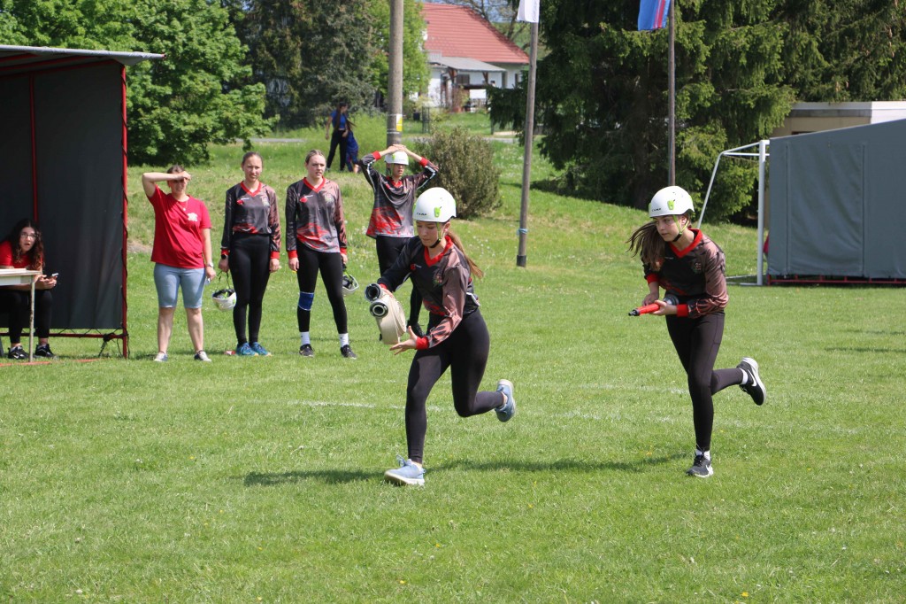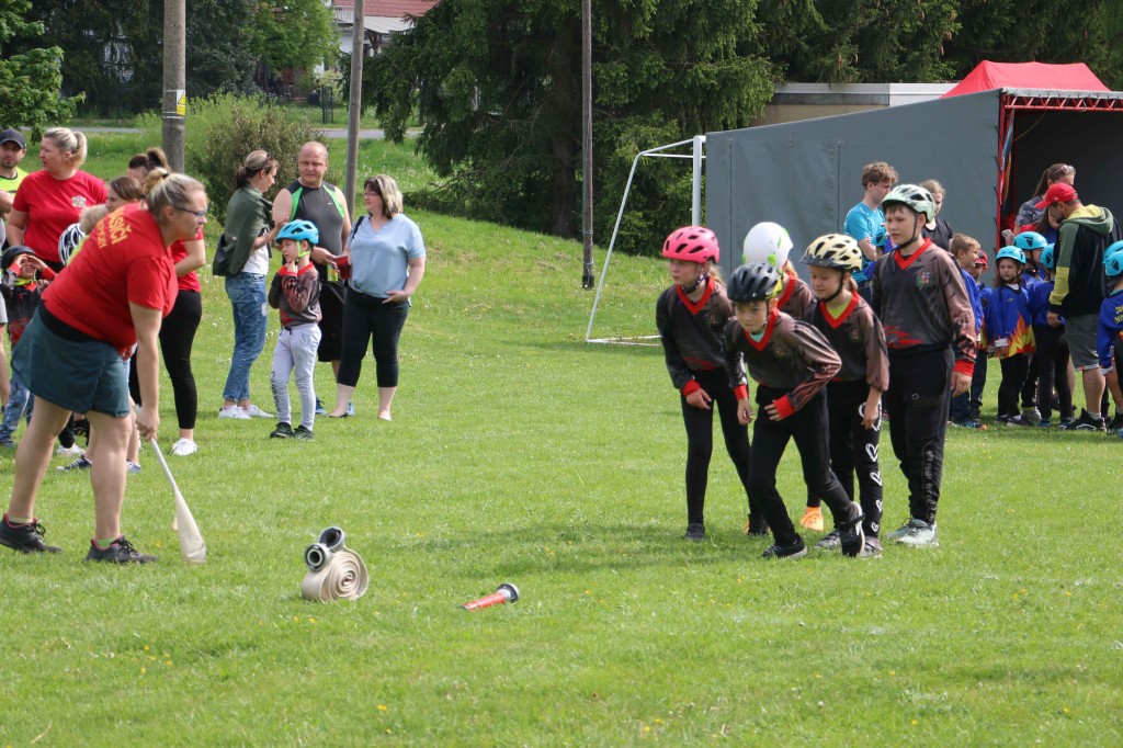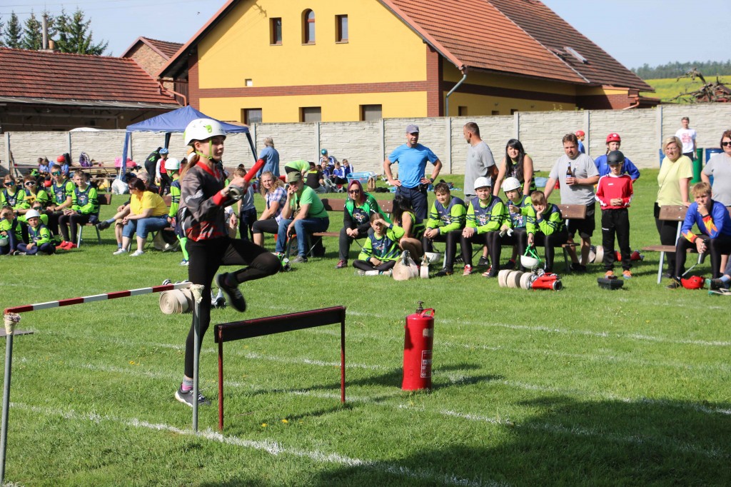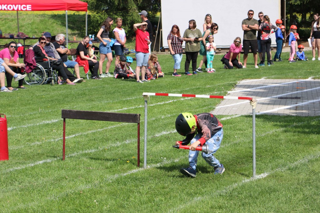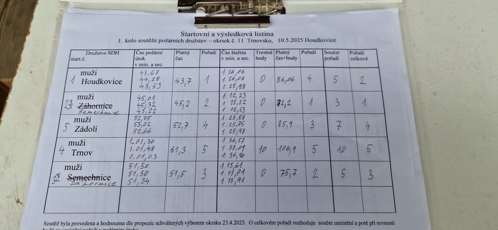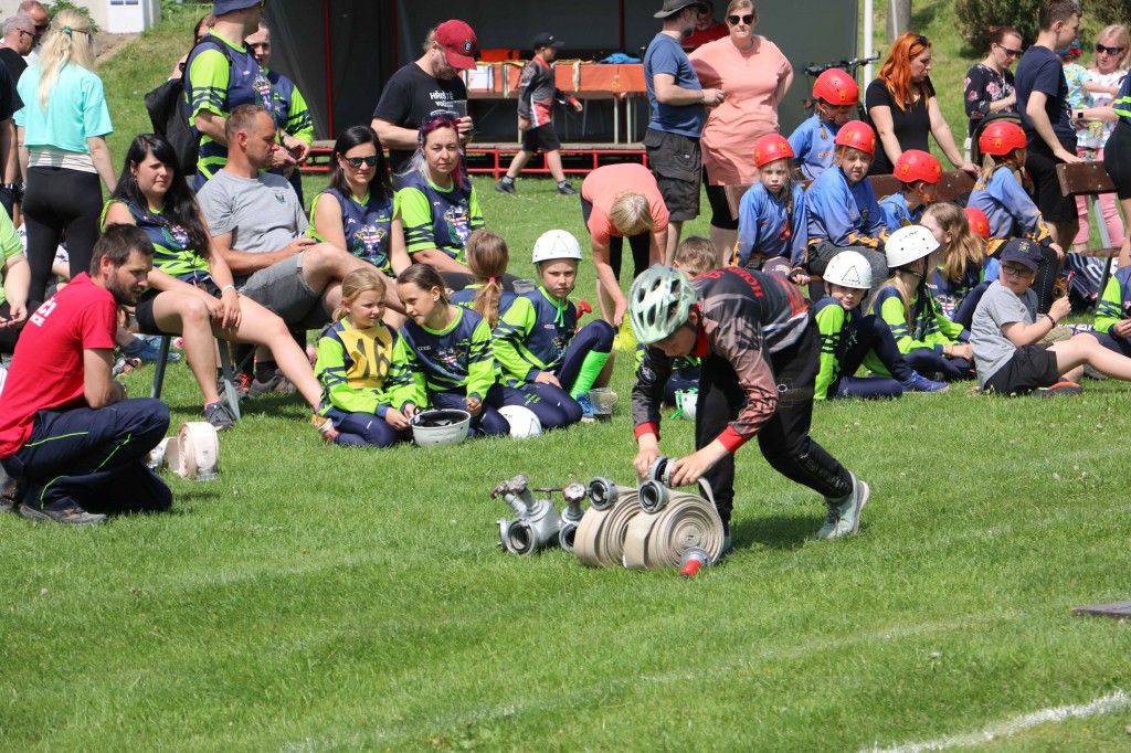 První květnovou sobotu, tj. 3. 5. 2025 jsme uspořádali u nás na hřišti v Houdkovicích soutěž pro mladé hasiče, která je součástí tzv. Ligy hasičské mládeže okresu Rychnov nad Kněžnou. Na tuto soutěž se nejvíce těšili naši nejmenší hasiči, protože se chtěli předvést před svými rodiči a kamarády. Celkem se k nám sjelo 16 družstev mladších a 13 starších. Děti změřily své dovednosti ve štafetě požárních dvojic a štafetě CTIF. Na obě disciplíny měli soutěžící 2 pokusy. Po úvodním slovu velitele soutěže a starostky obce obdržela družstva startovní čísla a šlo se soutěžit. Mladší nejdříve plnili štafetu dvojic a starší štafetu CTIF. Potom se kategorie na disciplínách prohodily. A jak si vedli naši svěřenci? Rychlejší hlídka mladších dosáhla na dvojicích času 82,20 sek. Byl to třetí nejrychlejší čas. Ve štafetě CTIF se stopky v lepším pokuse zastavily na hodnotě 116,80 sek, což byl čtvrtý nejrychlejší čas. Starší zahájili soutěž štafetou CTIF, kde dosáhli třetího nejrychlejšího času 91,64 sek. Potom se přesunuli na štafetu dvojic, kde svým dosaženým časem 54,15 sek nedali nikomu šanci a tímto časem dvojice ovládli. Když ukončila své pokusy poslední družstva, následovalo sčítání výsledků. O celkových výsledcích rozhodoval součet umístění, když ho měla družstva stejný, rozhodoval součet časů. Asi ve 13.30 hod proběhlo závěrečné vyhodnocení celé soutěže. Velká radost vypukla, když se naši mladší dozvěděli, že se umísili na pěkném 3. místě. V kategorii mladších vyhrály děti z Černíkovic a na druhém místě se umístila Javornice. Ještě větší radost nám udělaly děti ve starší kategorii. Jejich součet umístění byl čtyři, který byl nejnižší, a to znamenalo, že naši starší tuto kategorii vyhráli a umístili se tak na nádherném 1. místě. Když se toto dozvěděli, nemohli tomu uvěřit. Všem našim dětem se tak na hromadné fotografii houpaly na krku zlaté nebo bronzové medaile. Na druhém místě se umístily děti z Javornice a na třetím děti z Bystrého v Orl. h. Všechna družstva při závěrečném vyhodnocení obdržela diplom a věcné ceny, družstva na prvních třech místech byla navíc odměněna poháry a medailemi.