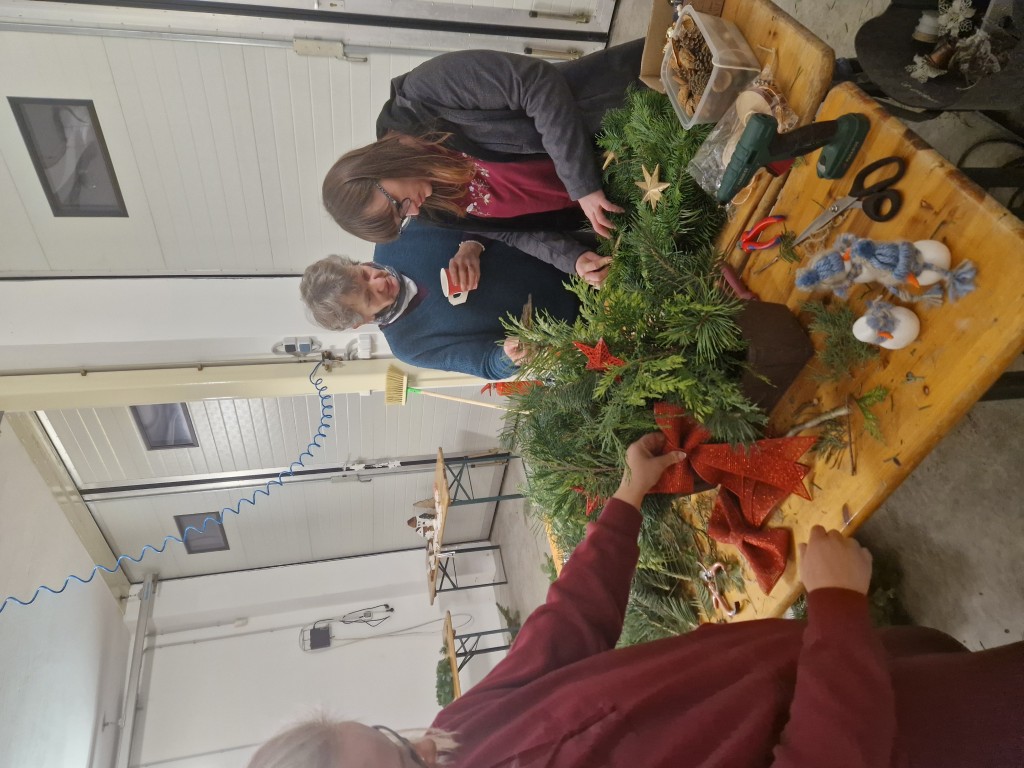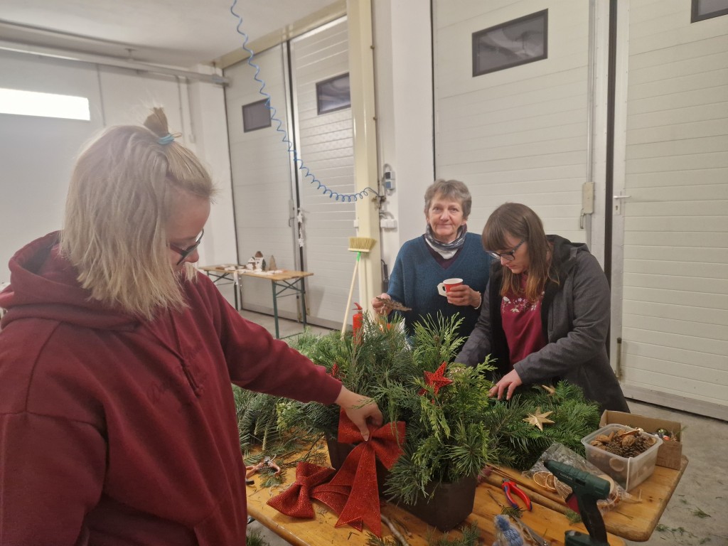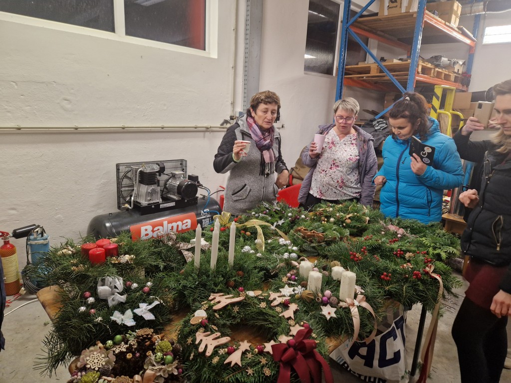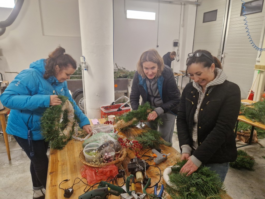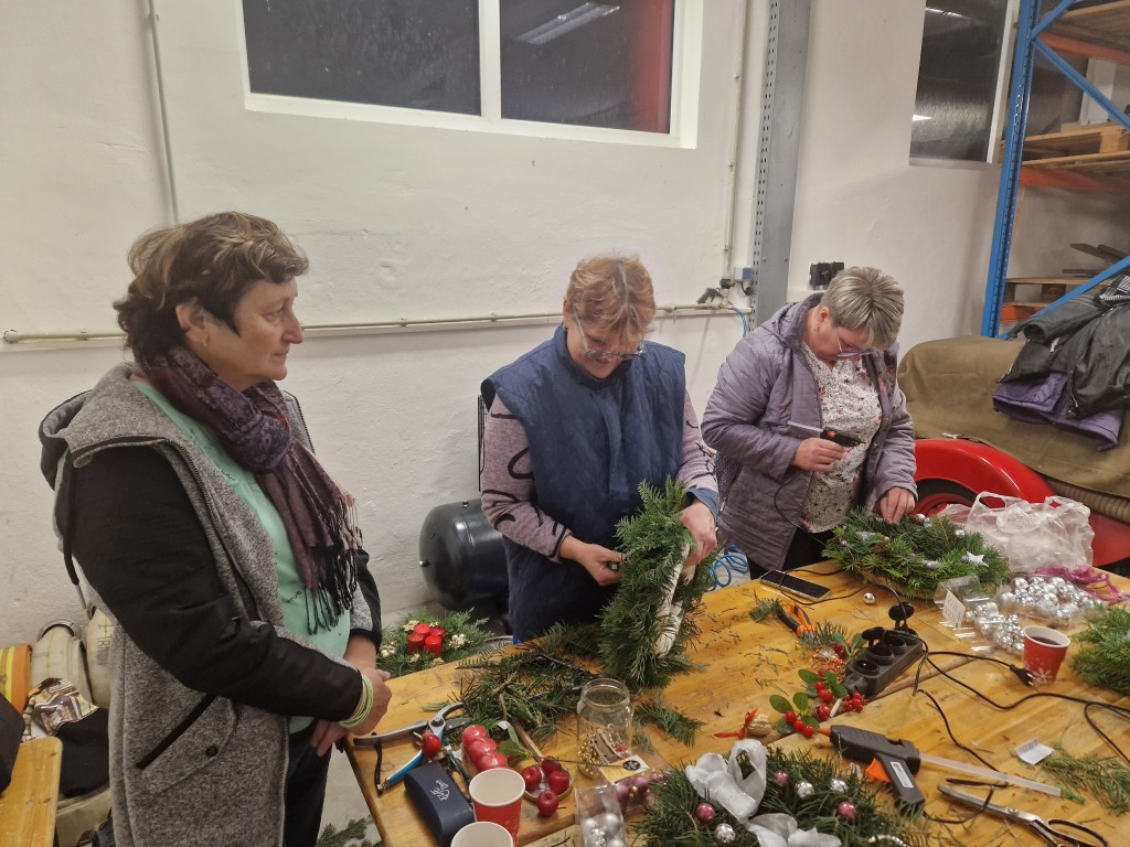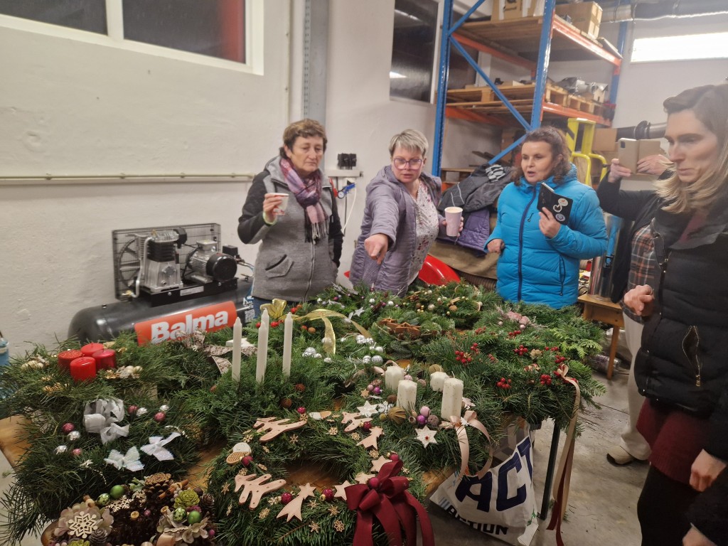 Gábina Michlová provedla účastníky celým procesem výroby adventních věnců. K dispozici byly větvičky jehličnanů. Zároveň si každý přinesl i vlastní ozdoby a materiály. Nechybělo společné sdílení nápadů, vzájemná inspirace a tipy od Gábiny, které se všem individuálně věnovala.