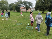 Nezapomnělo se ani na naše nejmenší, pro ně byl k dispozici zajímavý doprovodný program – nafukovací kombajn, vyzkoušely si dojení, mletí obilí.