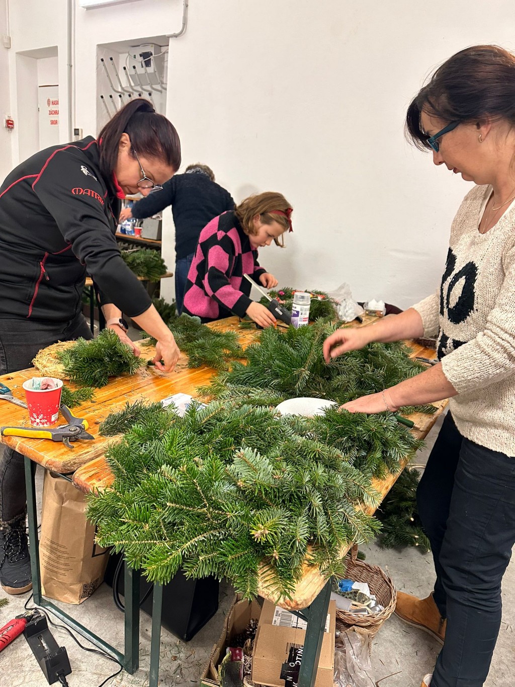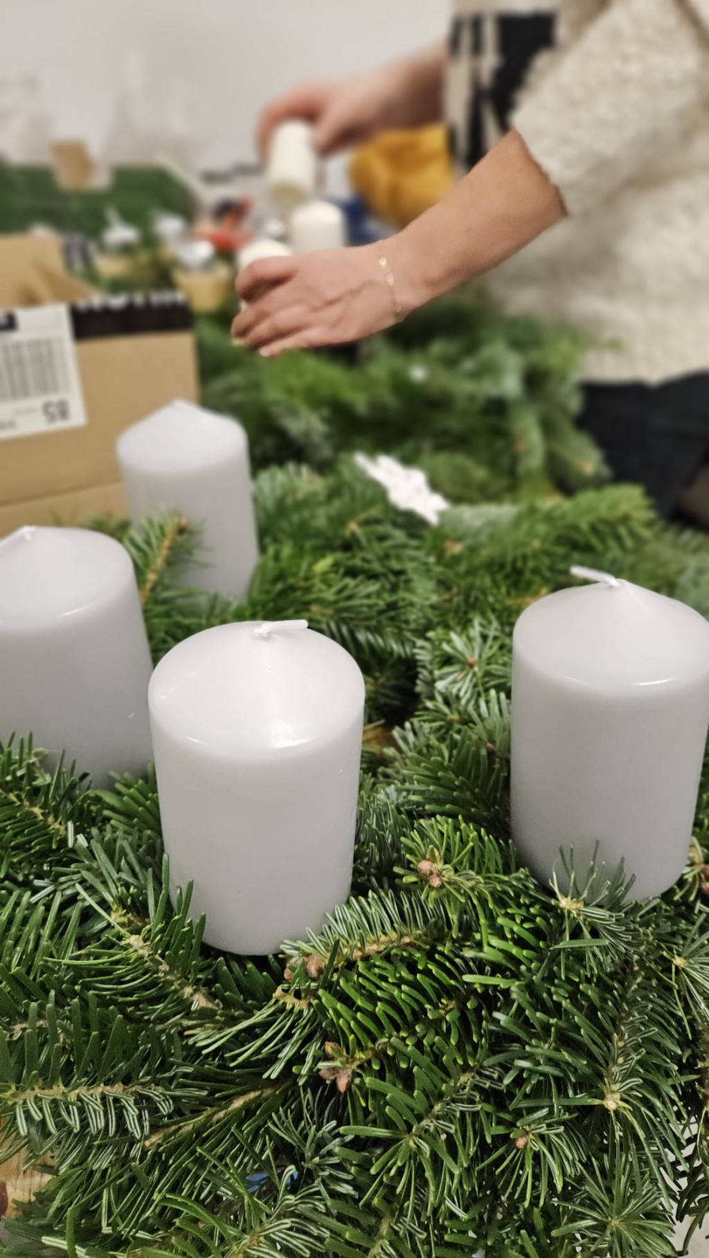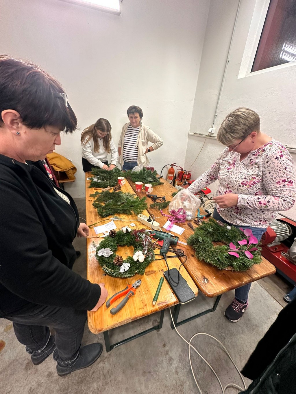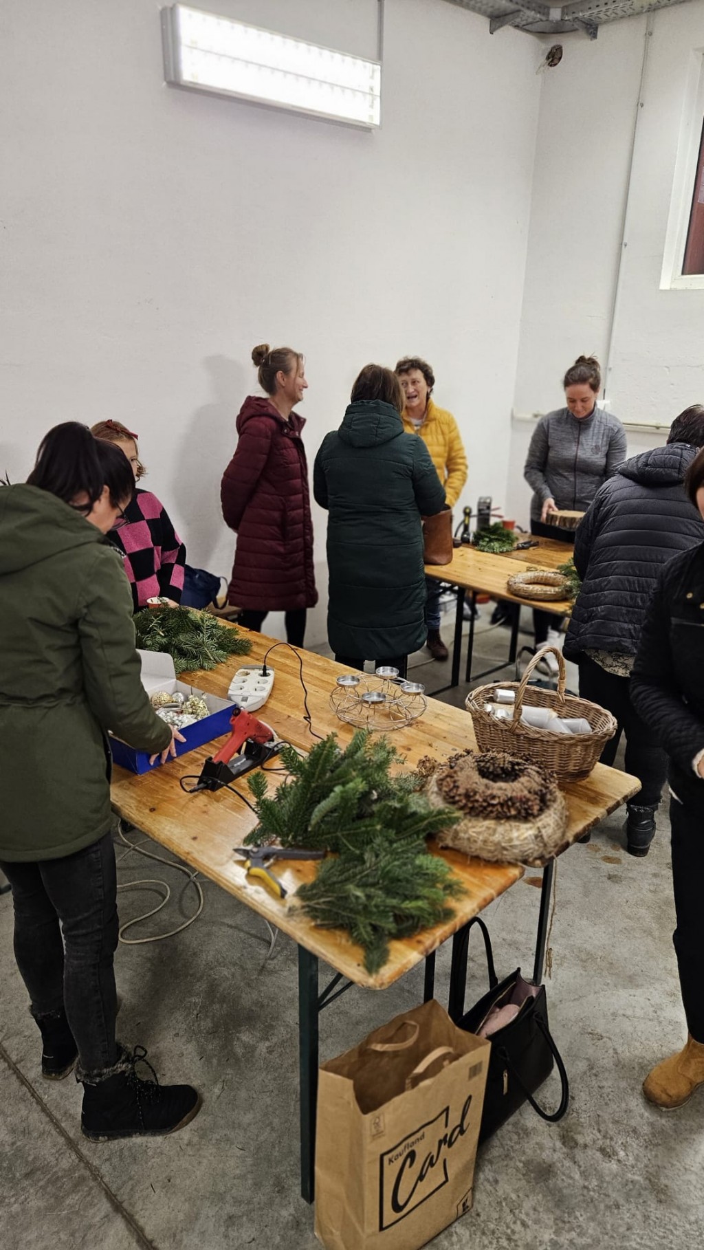 Pozvání přijala paní Tereza Štenclová z Kvítko Tereza z Bílého Újezda. Vzhledem ke kapacitě garáže byla účast omezena na 15 přihlášených osob. Každý si z domu mohl přinést přírodniny, svíčky, stuhy, ale byla i možnost zakoupení dekorace. Paní Tereza nám předvedla techniku vázání věnce, každý se pak dal do výroby. Při konečném zdobení nám byla opět k ruce a velice nám pomohla vše nadekorovat.