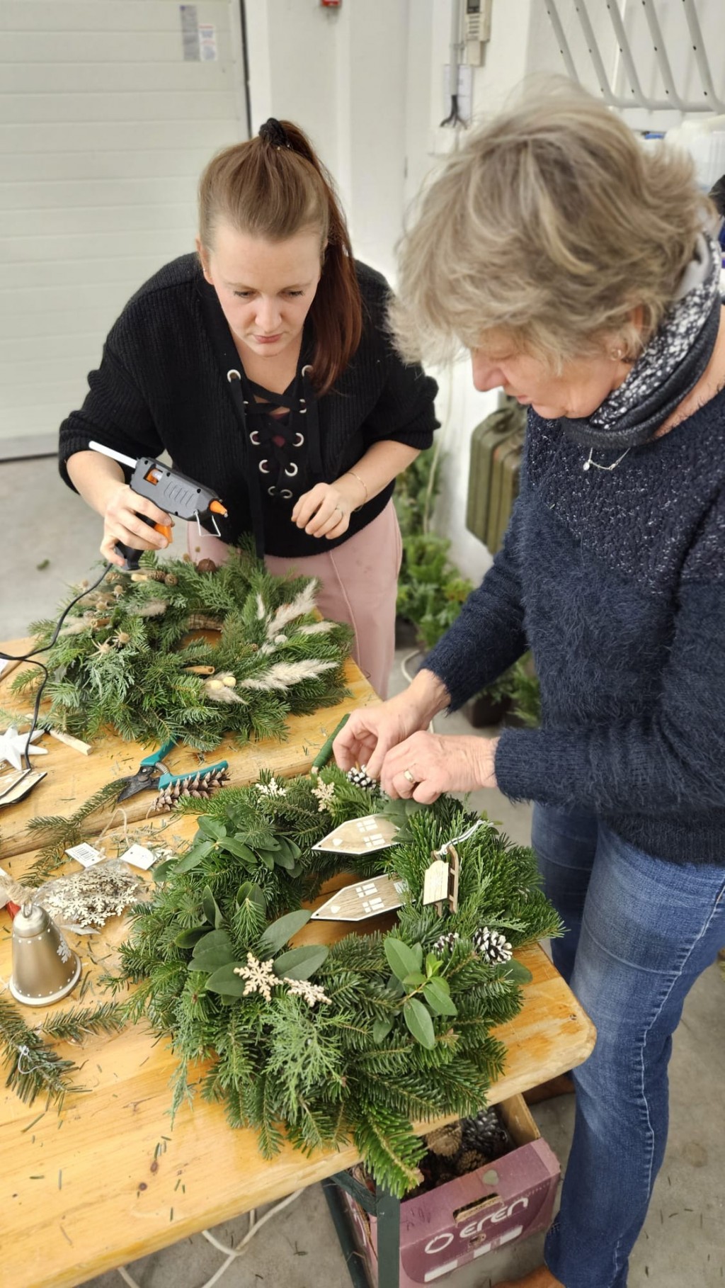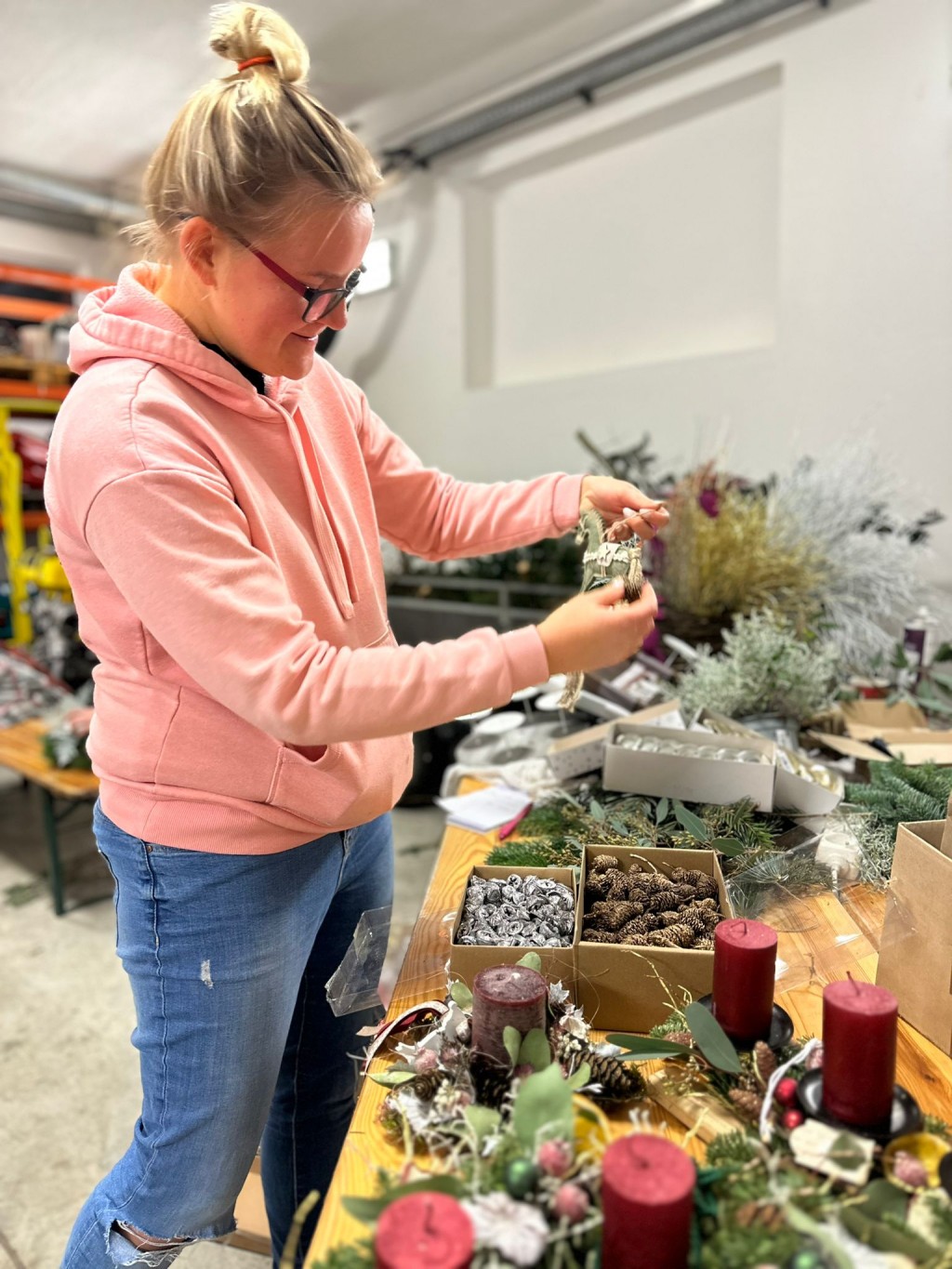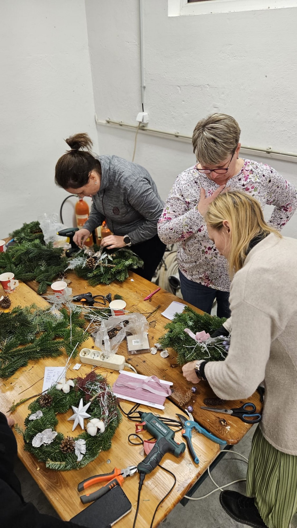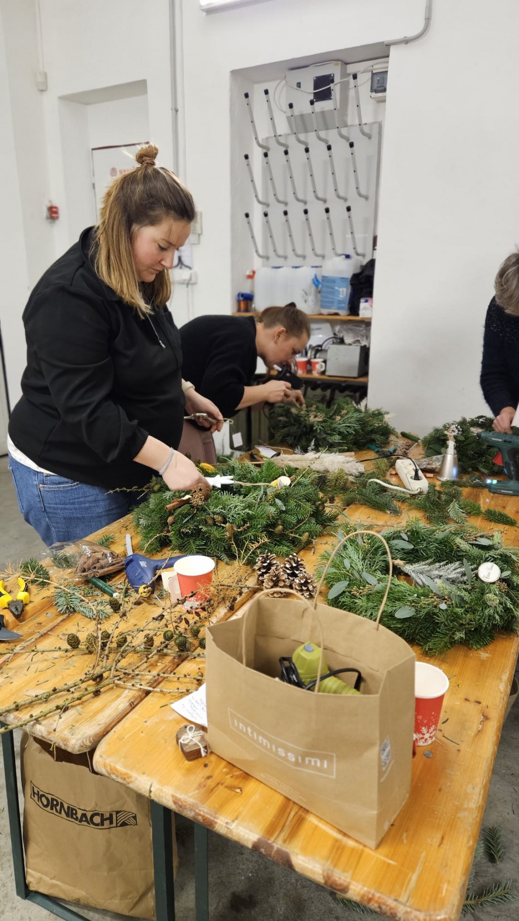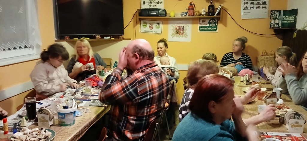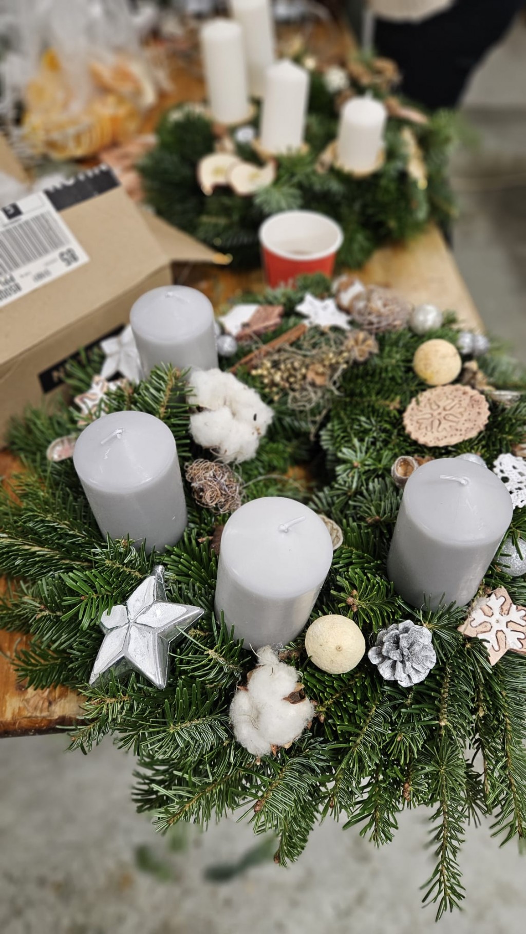 Pozvání přijala paní Tereza Štenclová z Kvítko Tereza z Bílého Újezda. Vzhledem ke kapacitě garáže byla účast omezena na 15 přihlášených osob. Každý si z domu mohl přinést přírodniny, svíčky, stuhy, ale byla i možnost zakoupení dekorace. Paní Tereza nám předvedla techniku vázání věnce, každý se pak dal do výroby. Při konečném zdobení nám byla opět k ruce a velice nám pomohla vše nadekorovat.