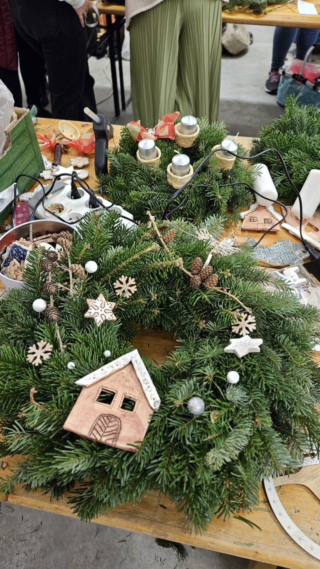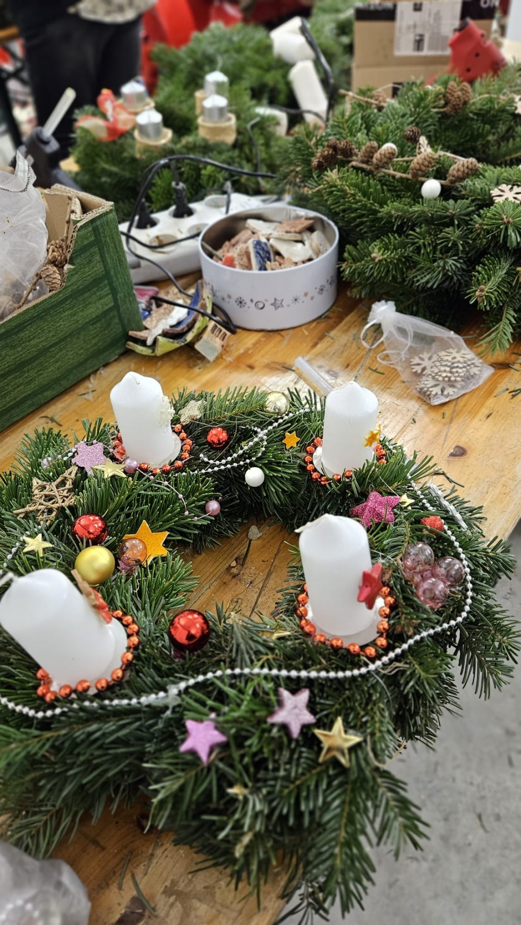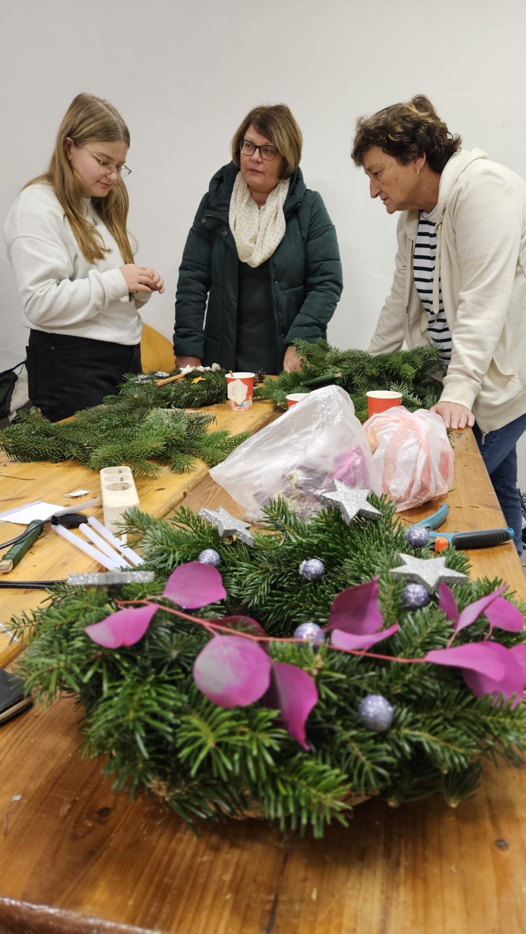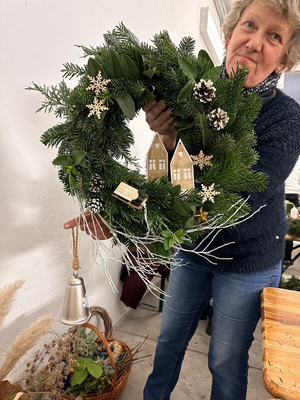 Pozvání přijala paní Tereza Štenclová z Kvítko Tereza z Bílého Újezda. Vzhledem ke kapacitě garáže byla účast omezena na 15 přihlášených osob. Každý si z domu mohl přinést přírodniny, svíčky, stuhy, ale byla i možnost zakoupení dekorace. Paní Tereza nám předvedla techniku vázání věnce, každý se pak dal do výroby. Při konečném zdobení nám byla opět k ruce a velice nám pomohla vše nadekorovat.