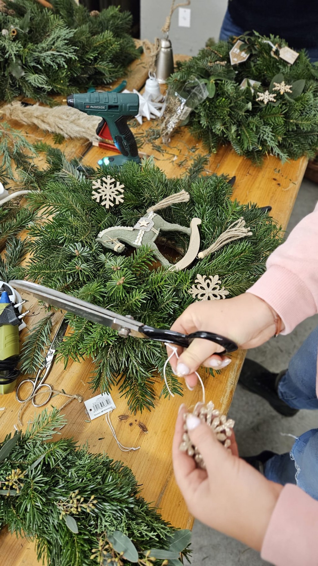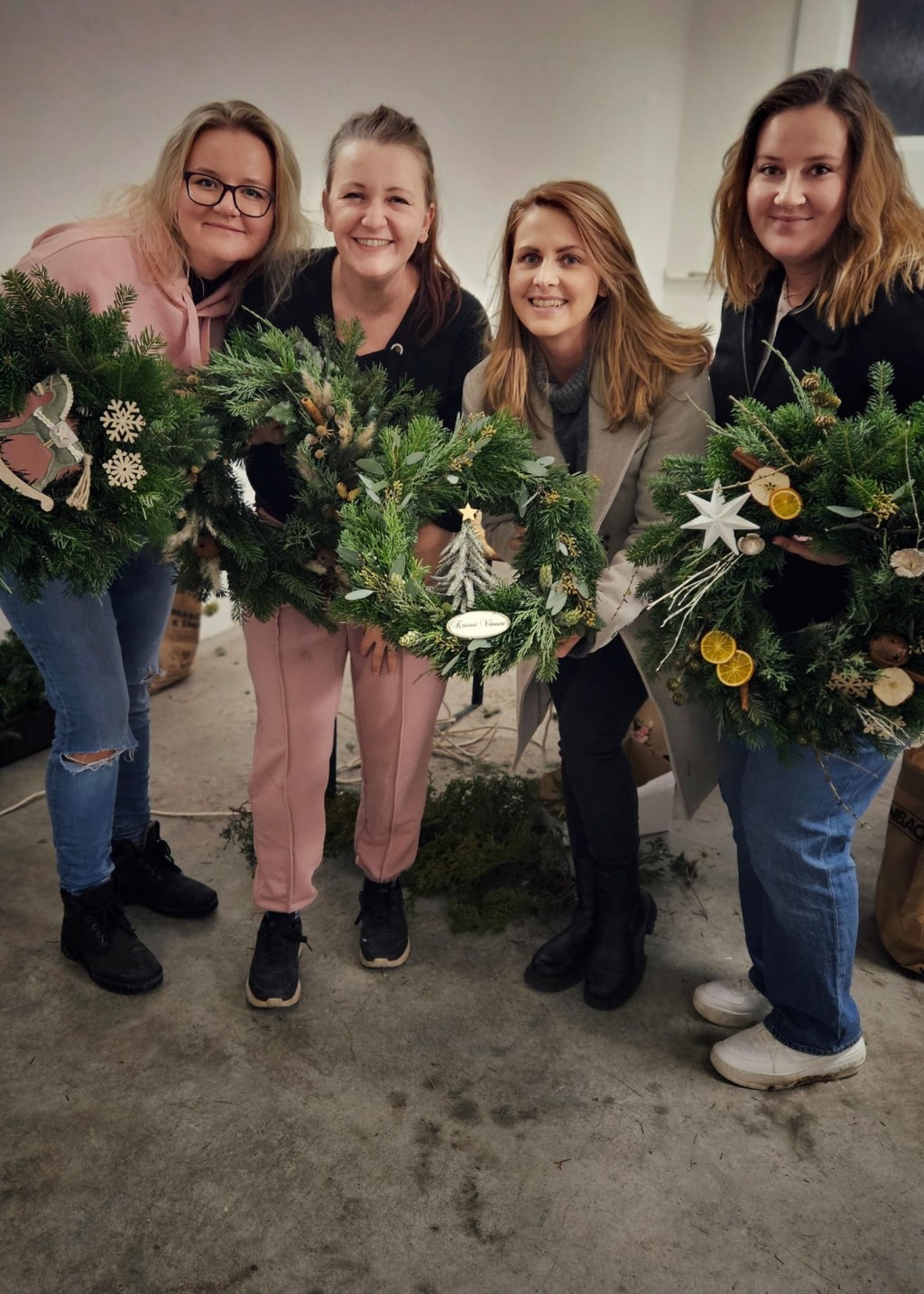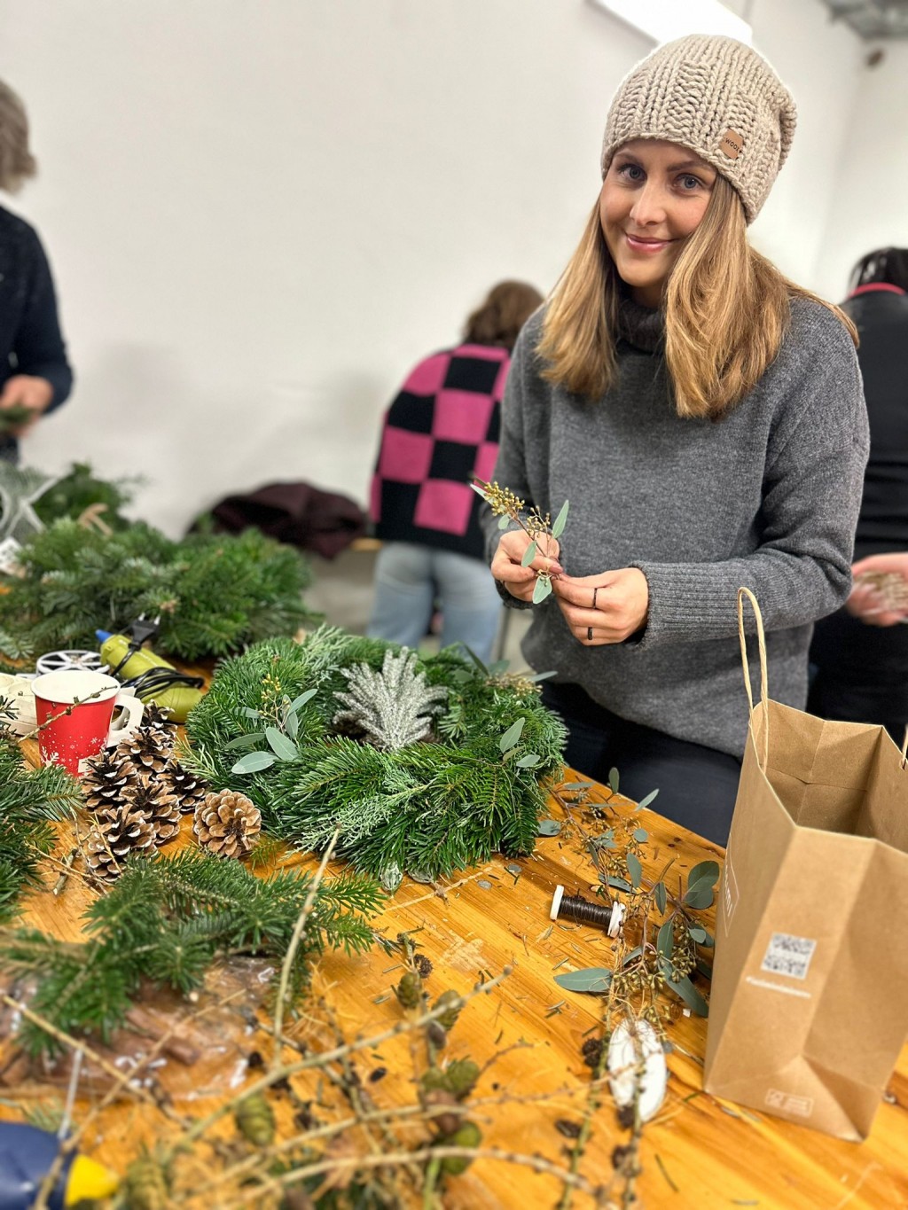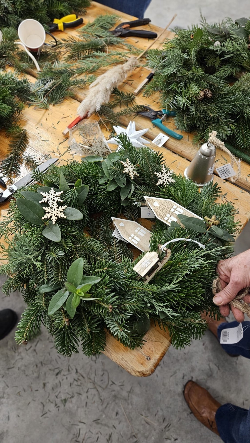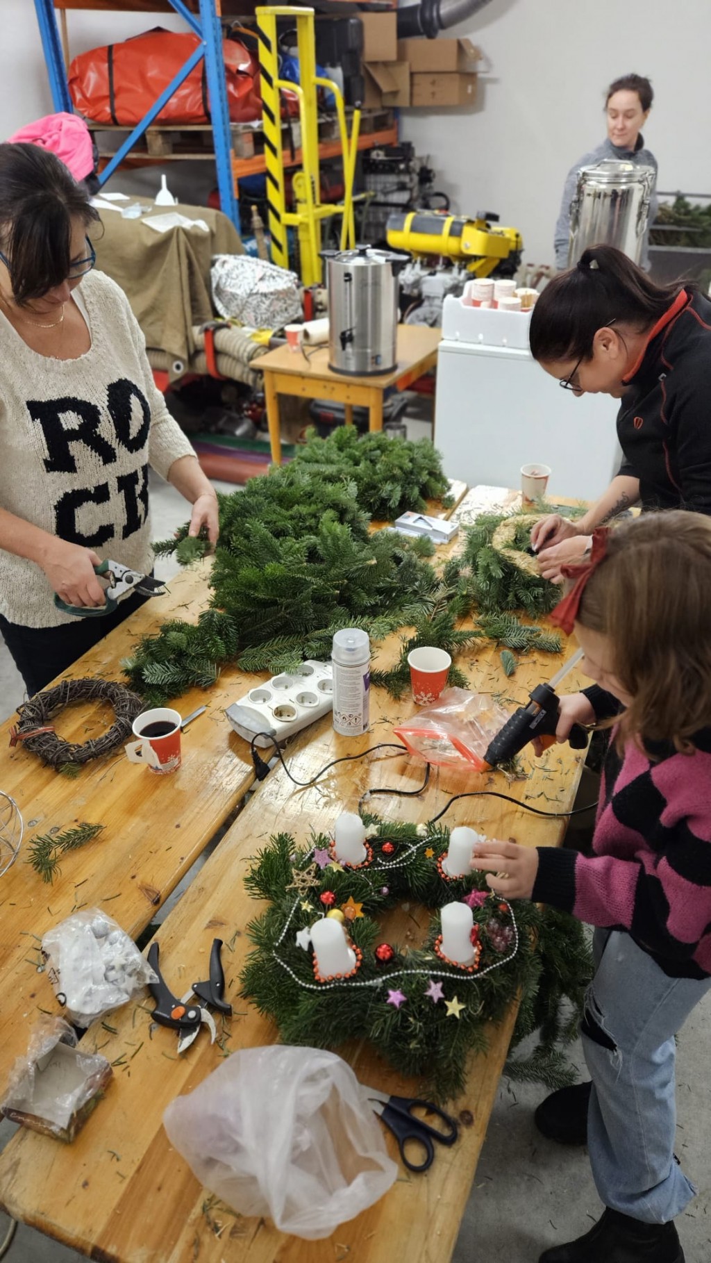 Pozvání přijala paní Tereza Štenclová z Kvítko Tereza z Bílého Újezda. Vzhledem ke kapacitě garáže byla účast omezena na 15 přihlášených osob. Každý si z domu mohl přinést přírodniny, svíčky, stuhy, ale byla i možnost zakoupení dekorace. Paní Tereza nám předvedla techniku vázání věnce, každý se pak dal do výroby. Při konečném zdobení nám byla opět k ruce a velice nám pomohla vše nadekorovat.