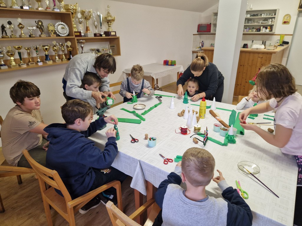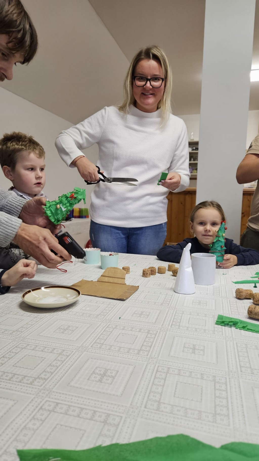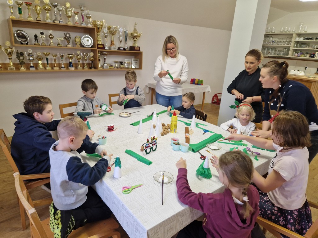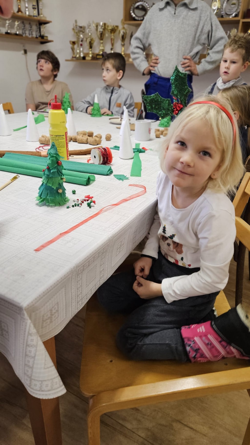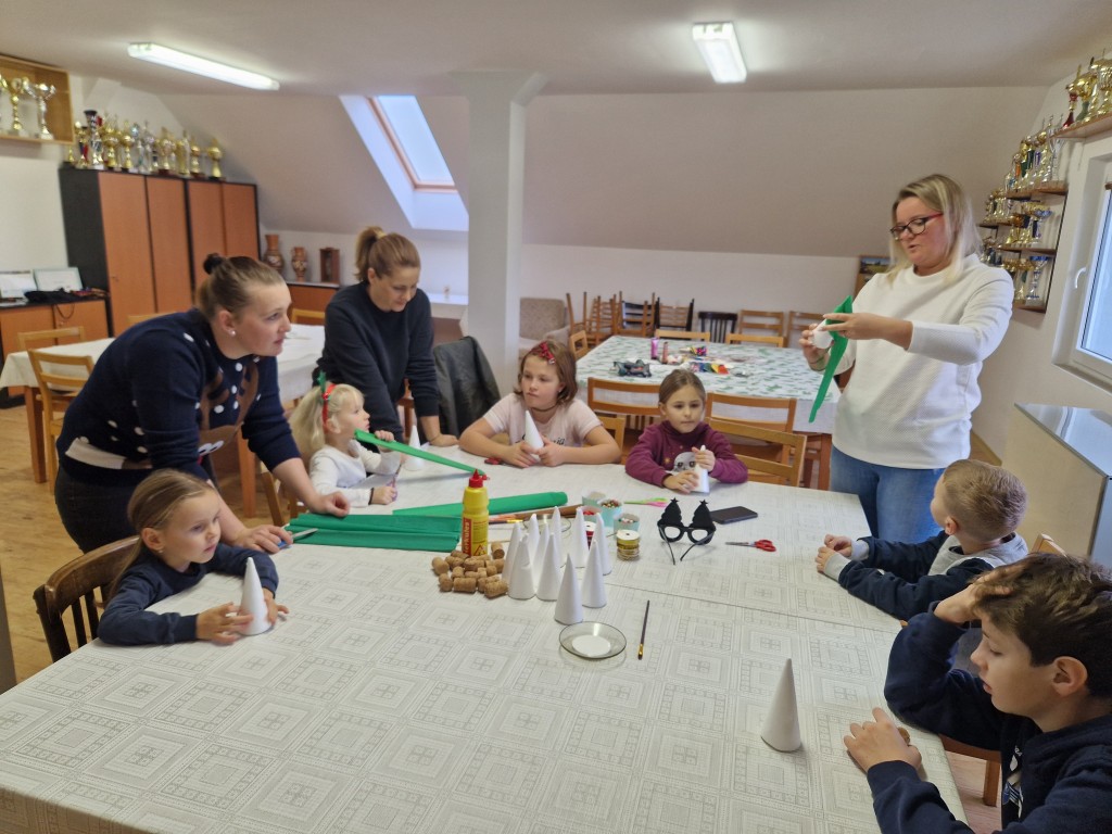 Děti si mohly vyrobit vánoční stromek, kouličku, vločku aj. Po vyrábění šly společně ozdobit malou jedličku u místního hostince.