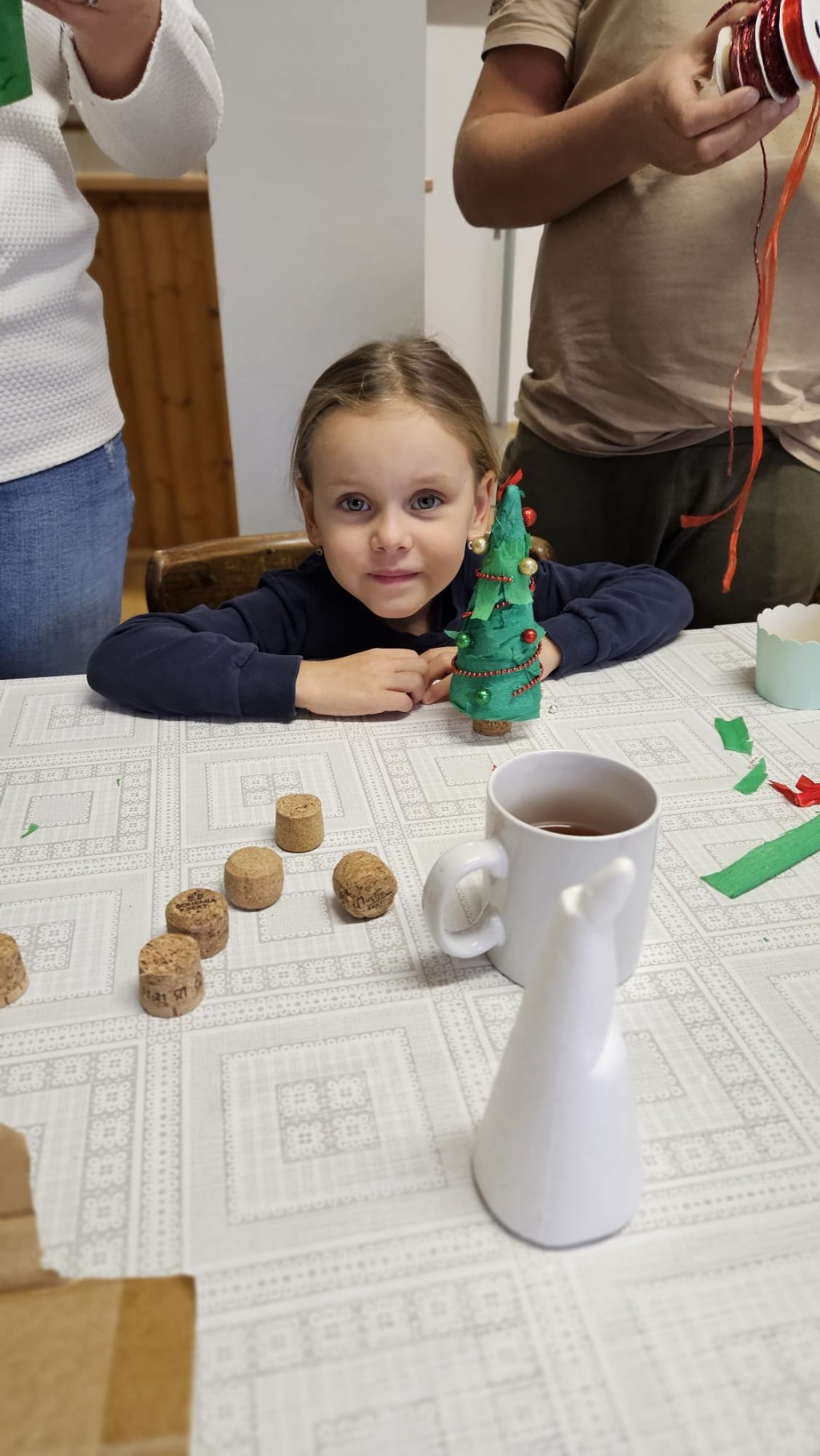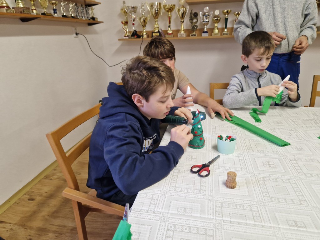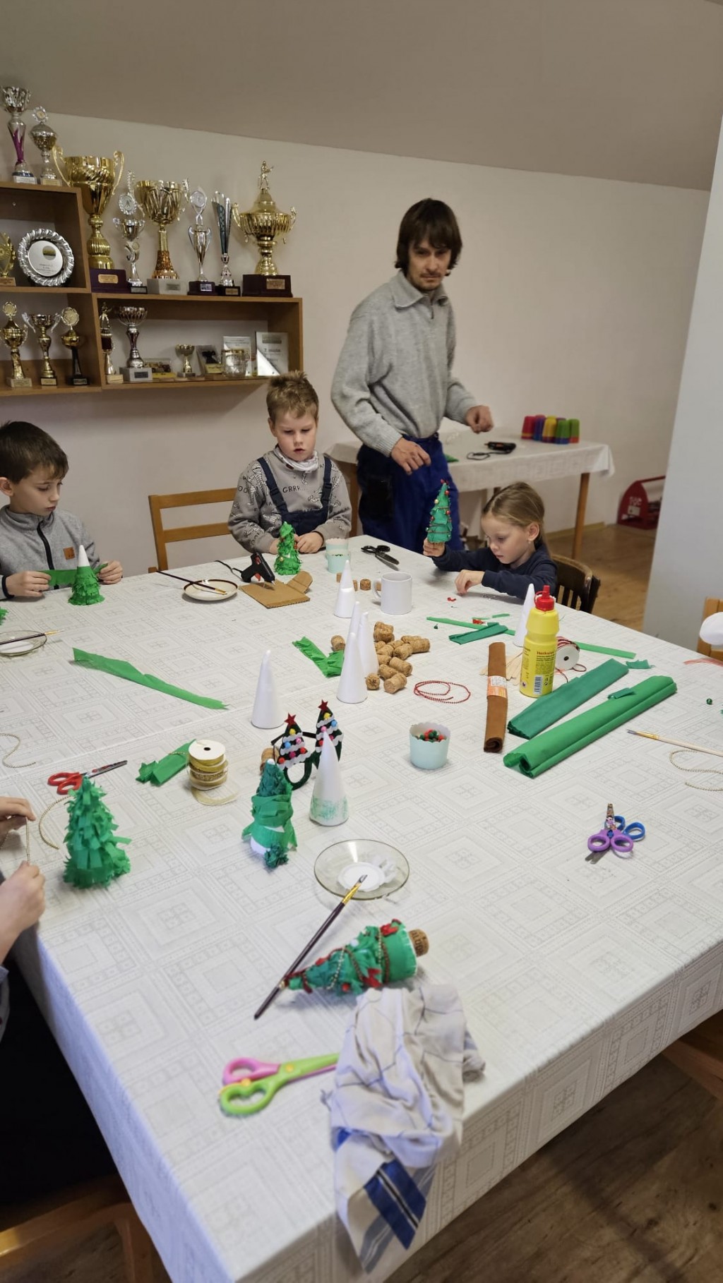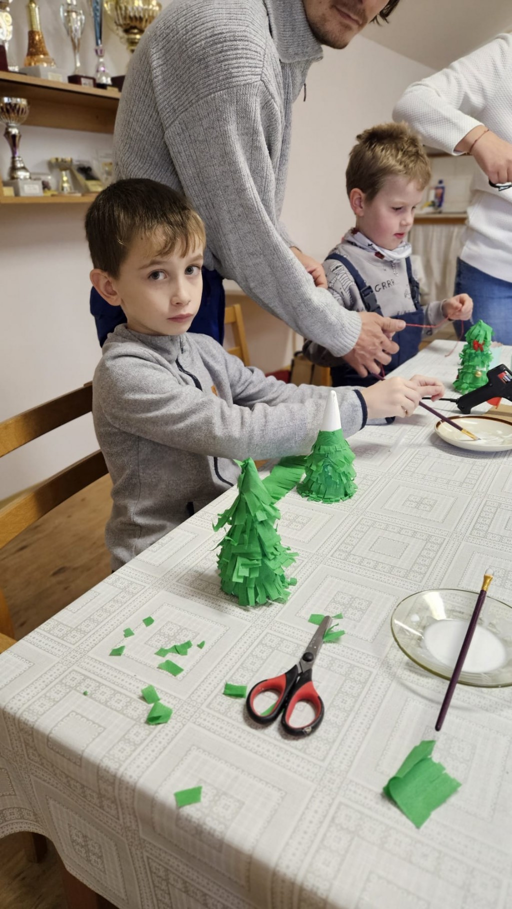 Děti si mohly vyrobit vánoční stromek, kouličku, vločku aj. Po vyrábění šly společně ozdobit malou jedličku u místního hostince.