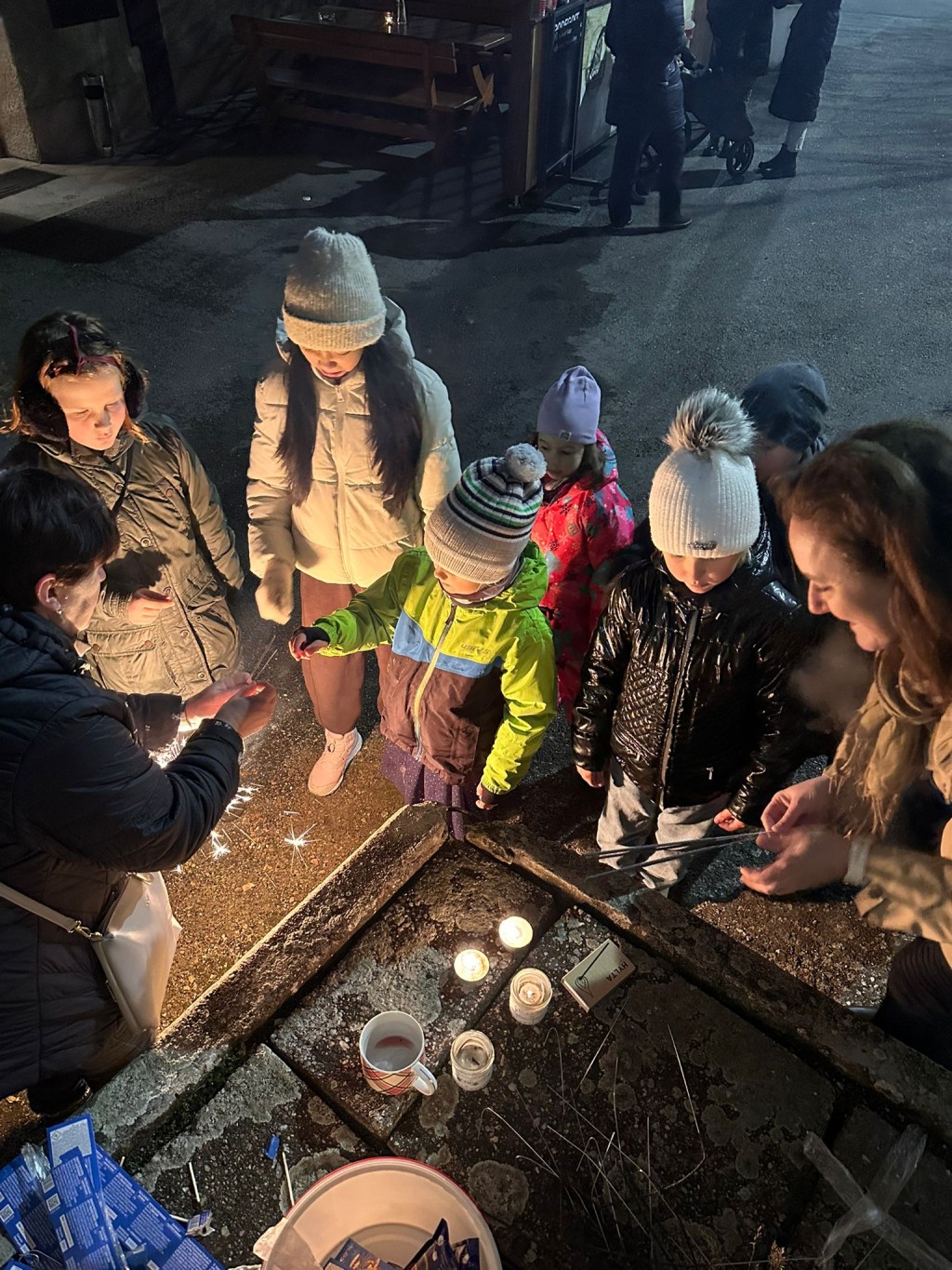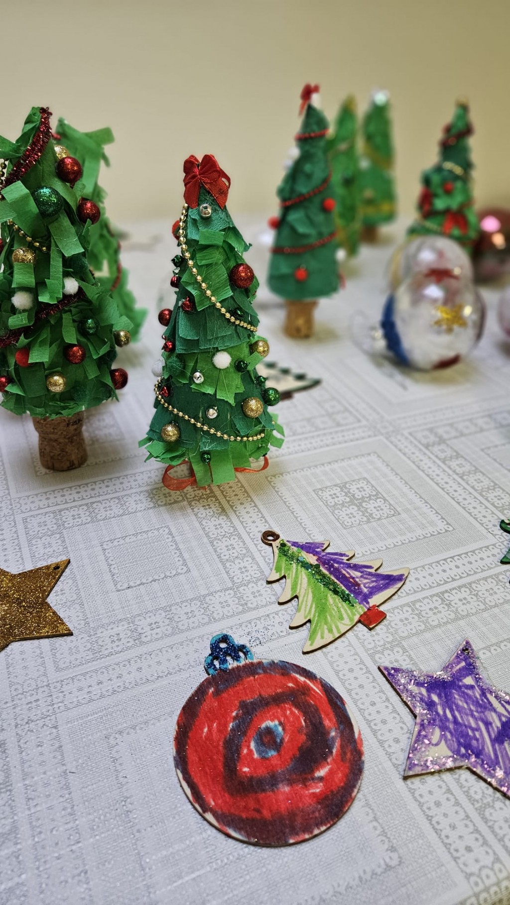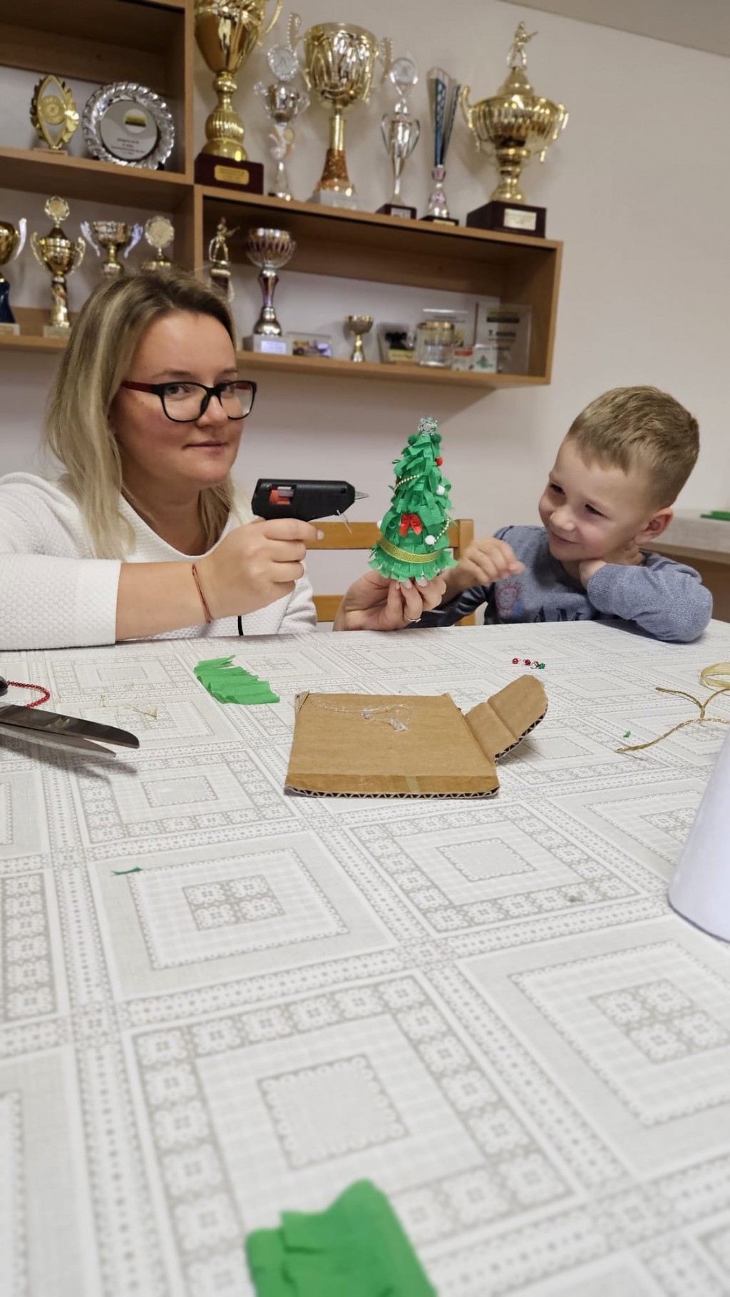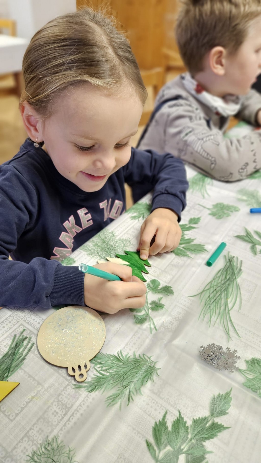 Děti si mohly vyrobit vánoční stromek, kouličku, vločku aj. Po vyrábění šly společně ozdobit malou jedličku u místního hostince.